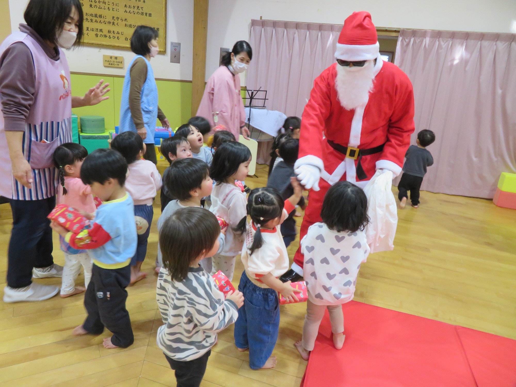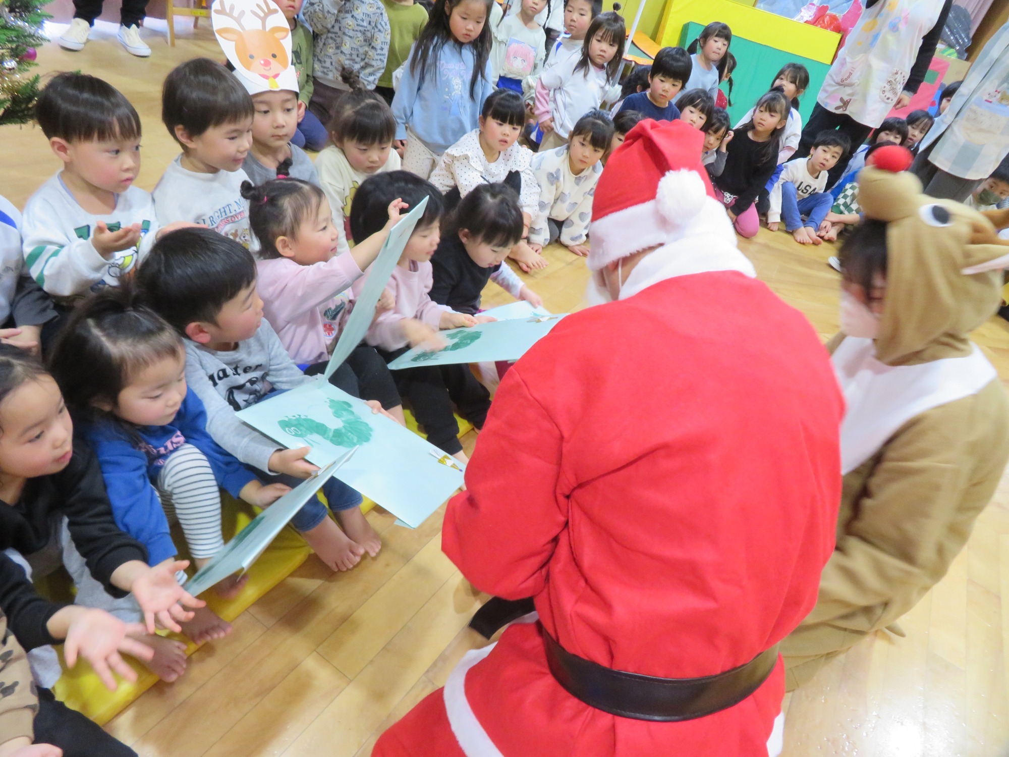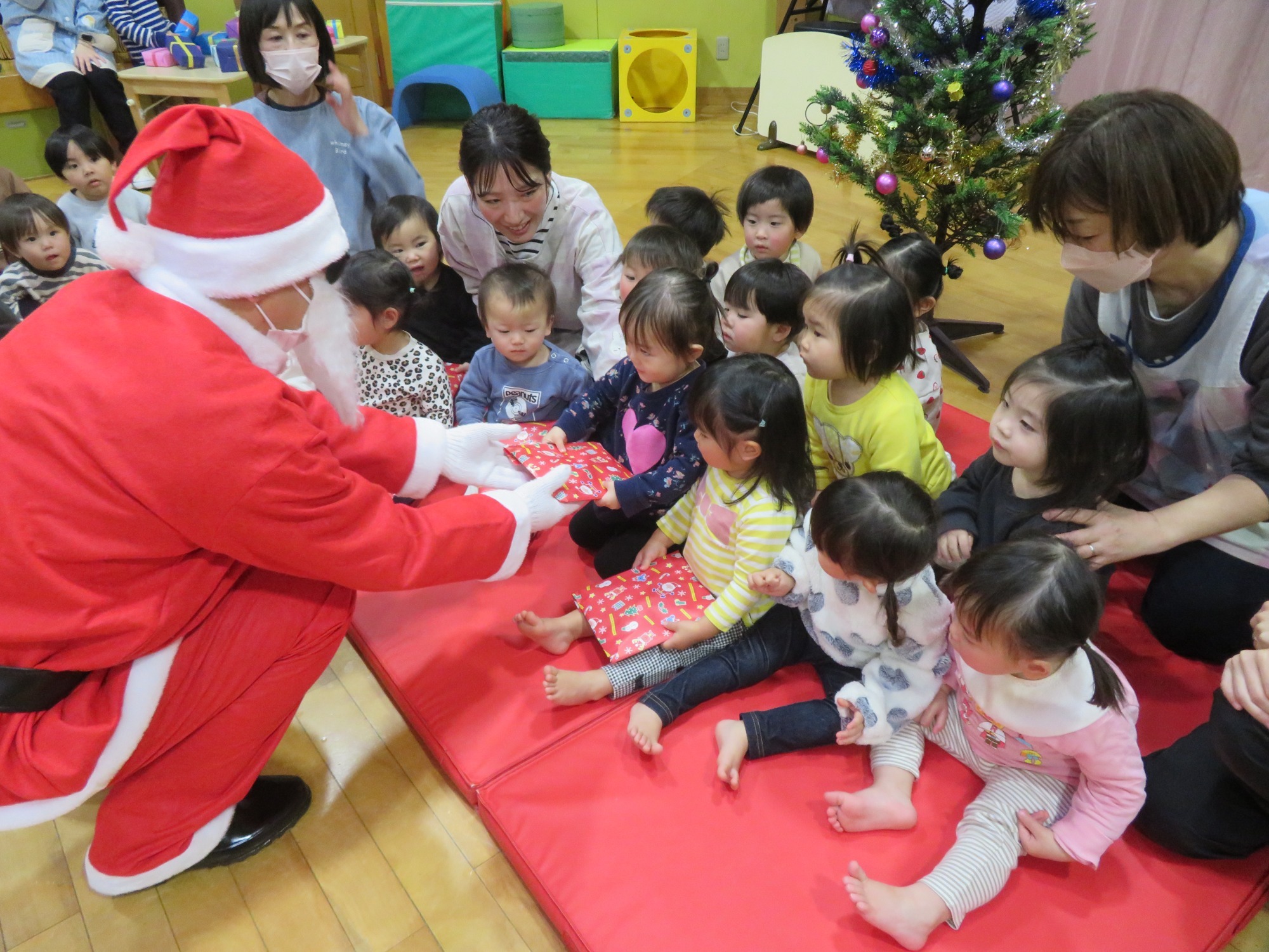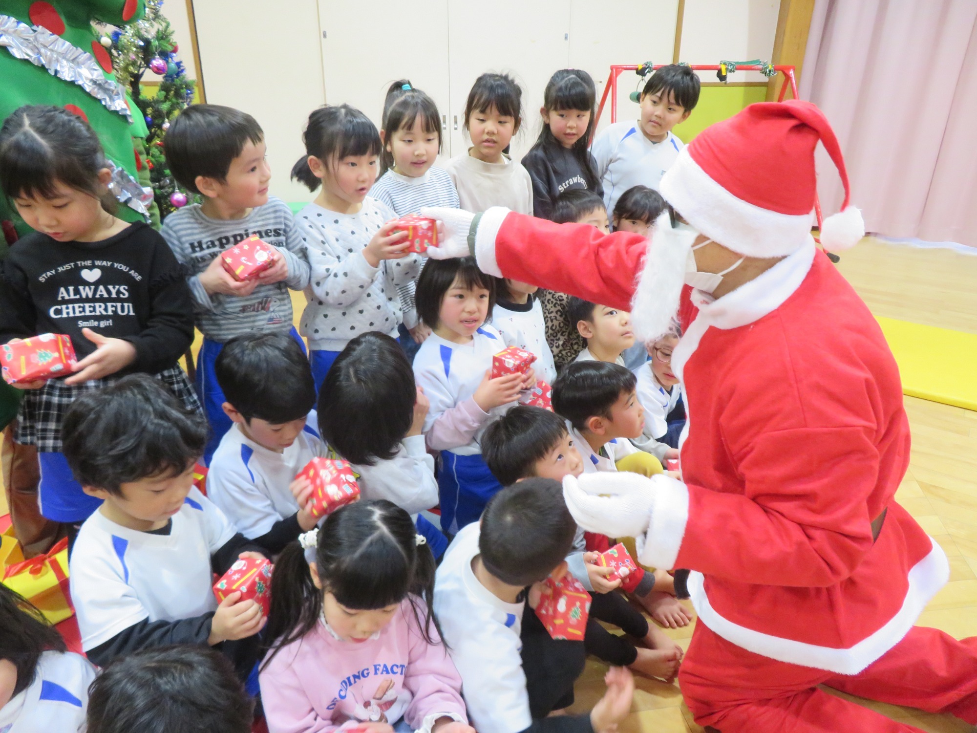 「大きいなぁ!」「プレゼントもっとってや!」みんなキラキラした目でサンタさんを見ていました✨
