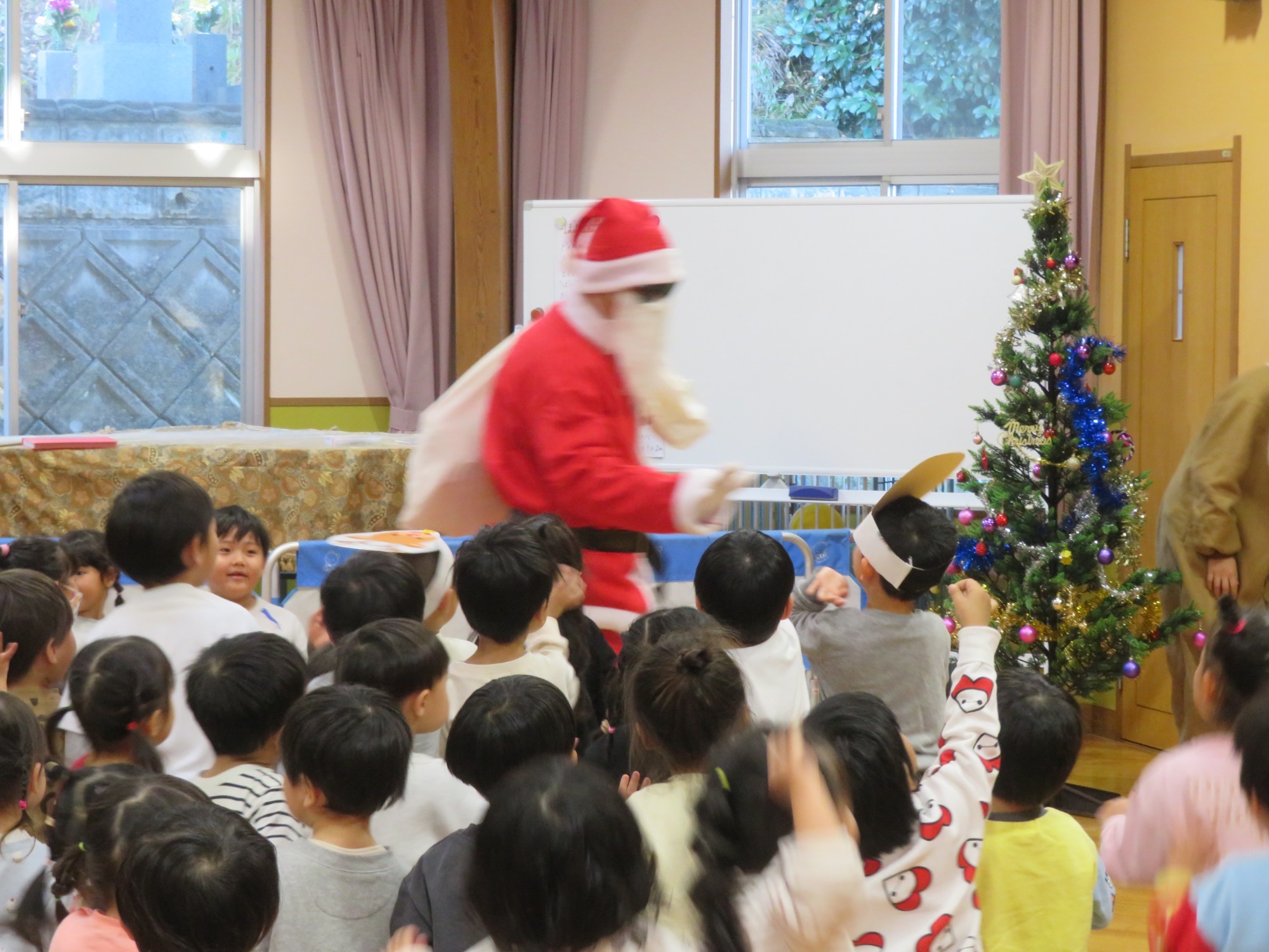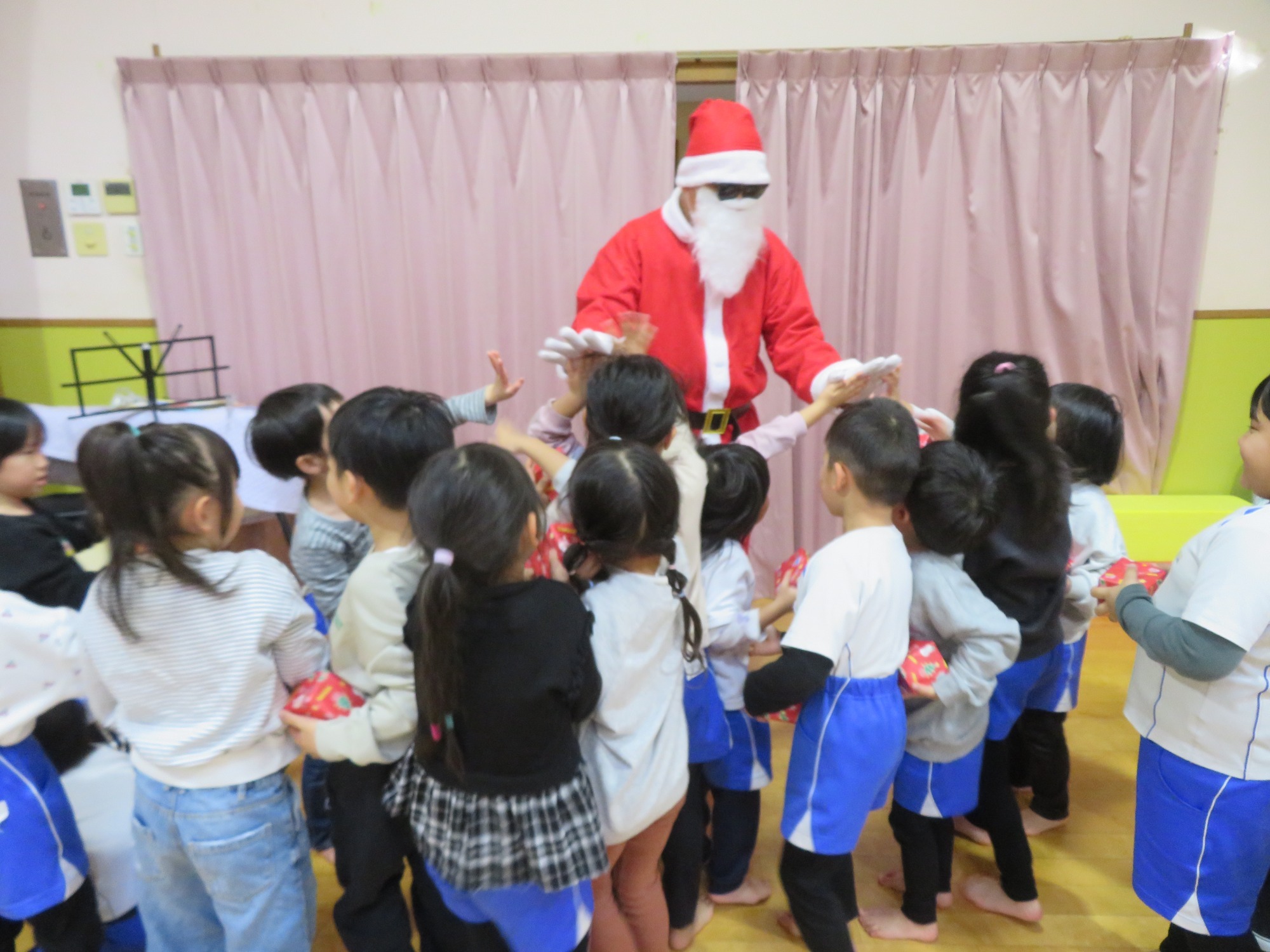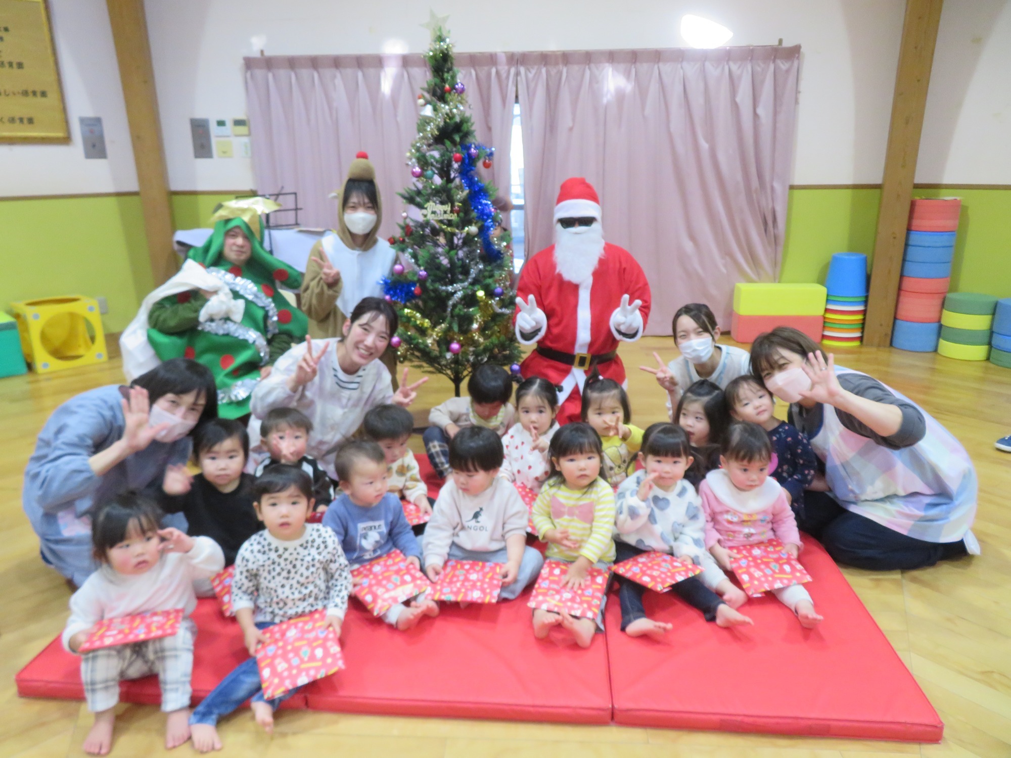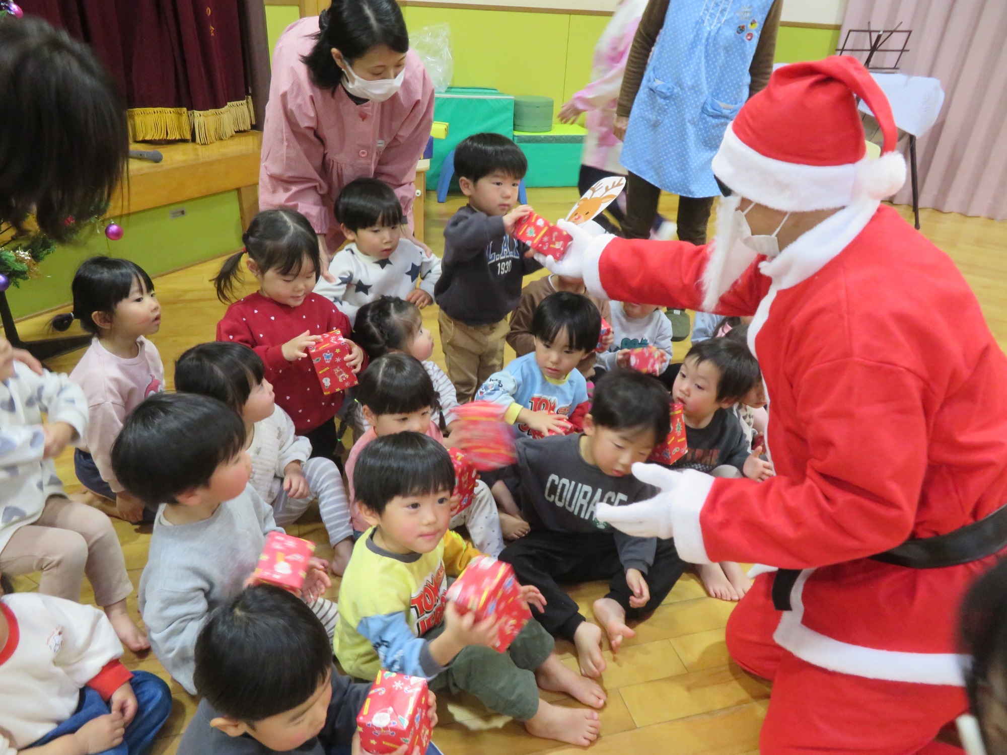 「大きいなぁ!」「プレゼントもっとってや!」みんなキラキラした目でサンタさんを見ていました✨
