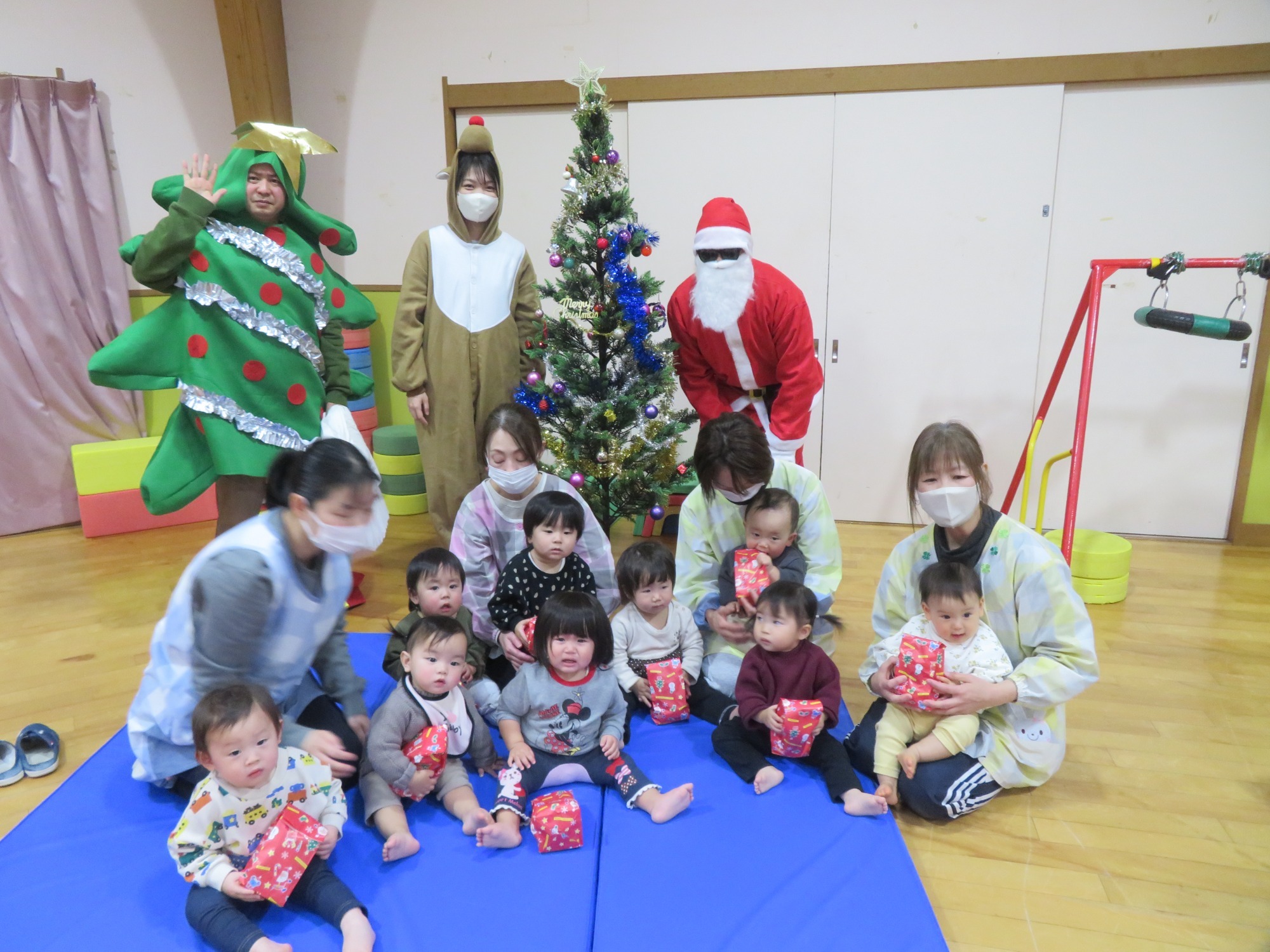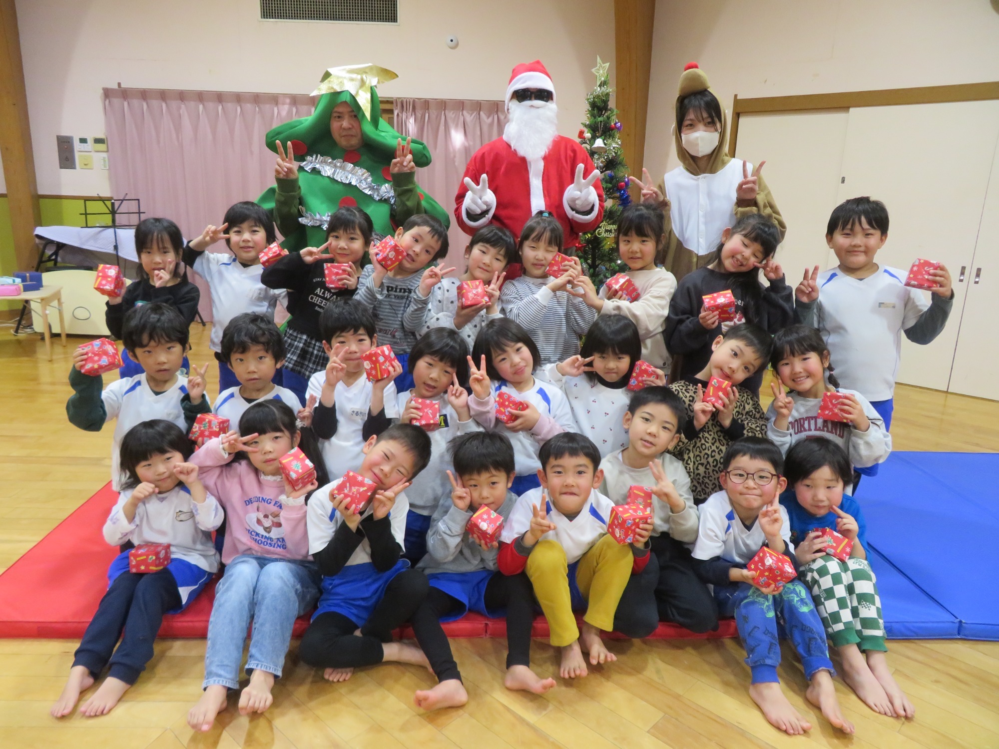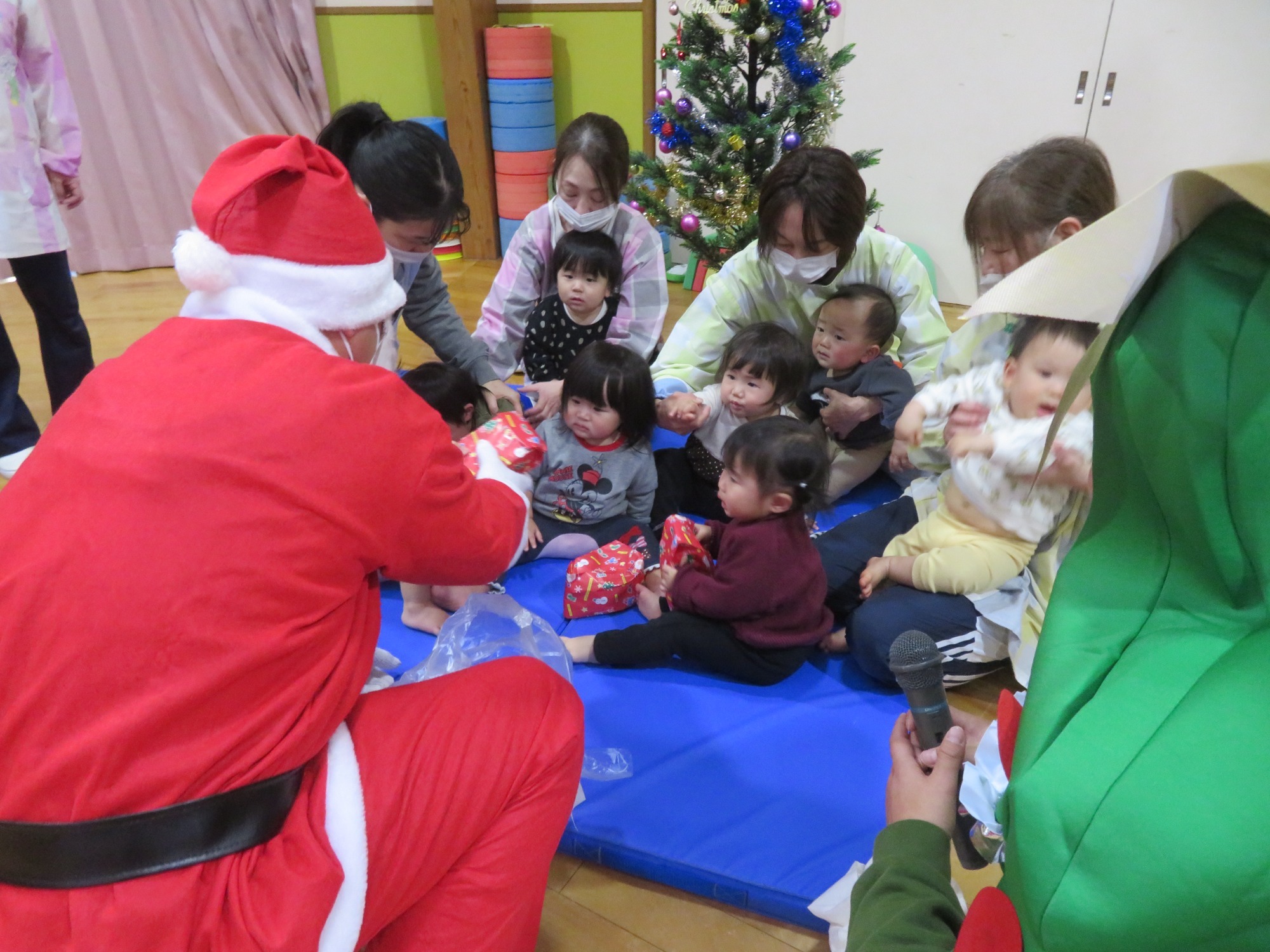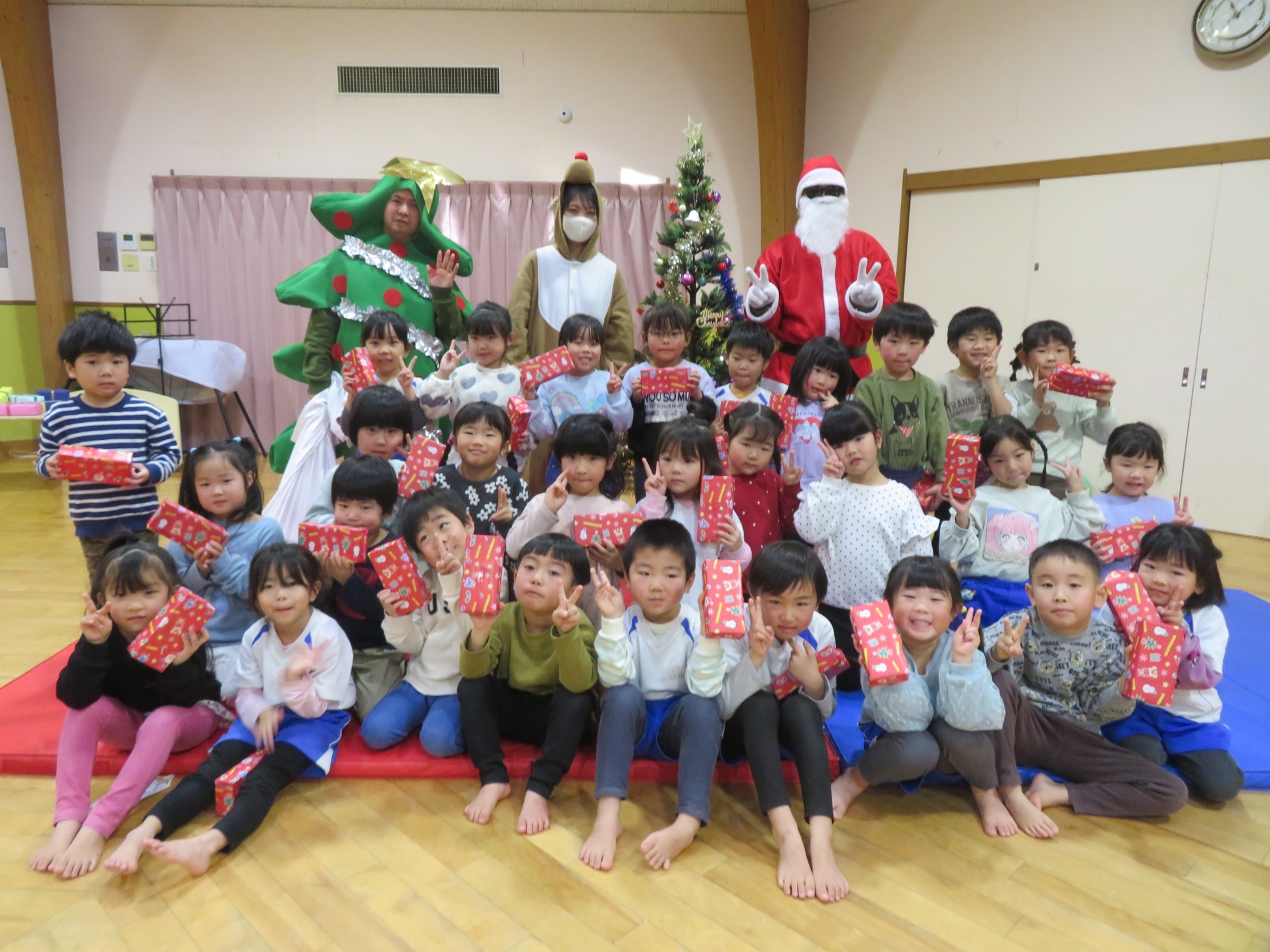 「大きいなぁ!」「プレゼントもっとってや!」みんなキラキラした目でサンタさんを見ていました✨