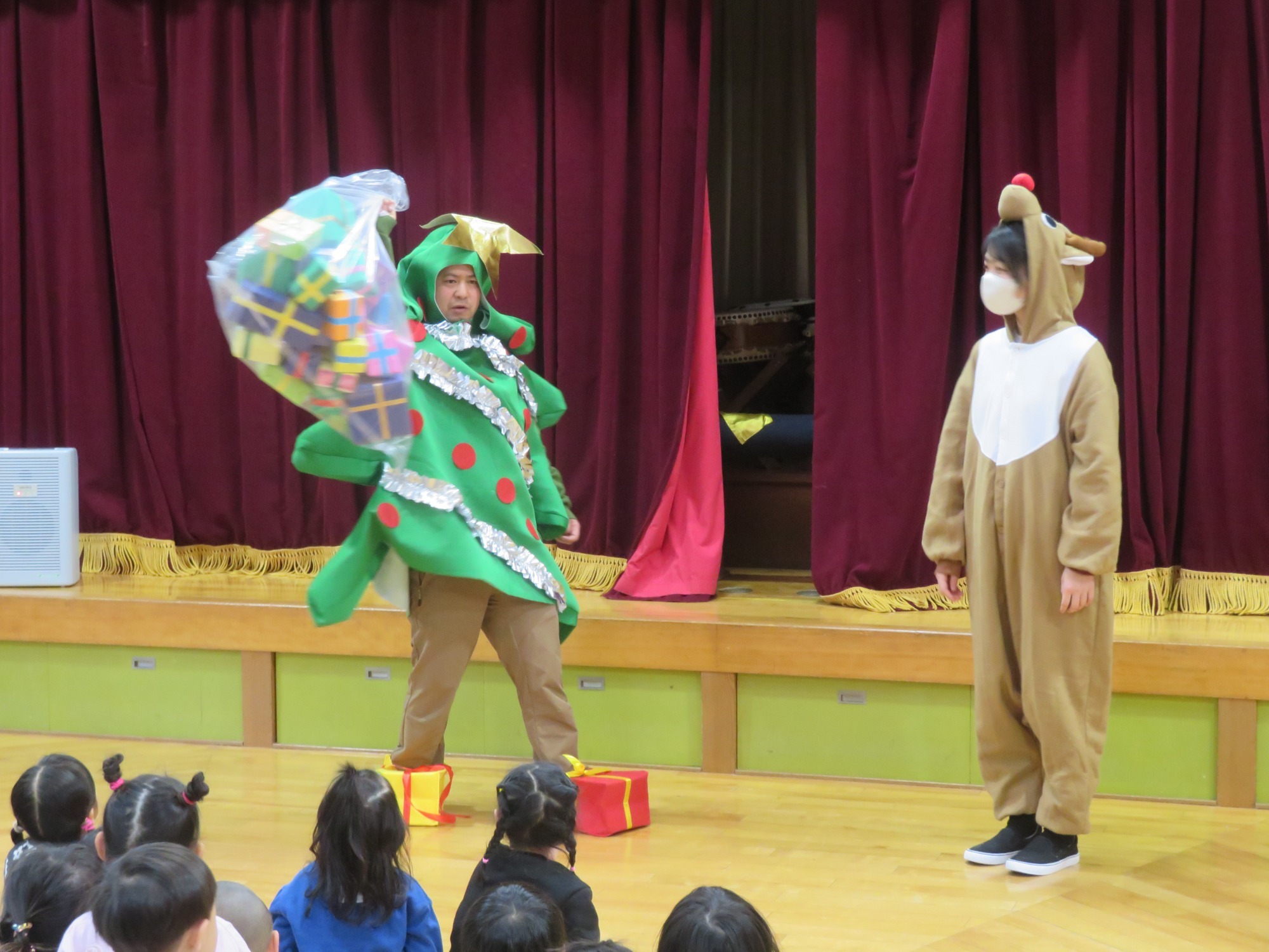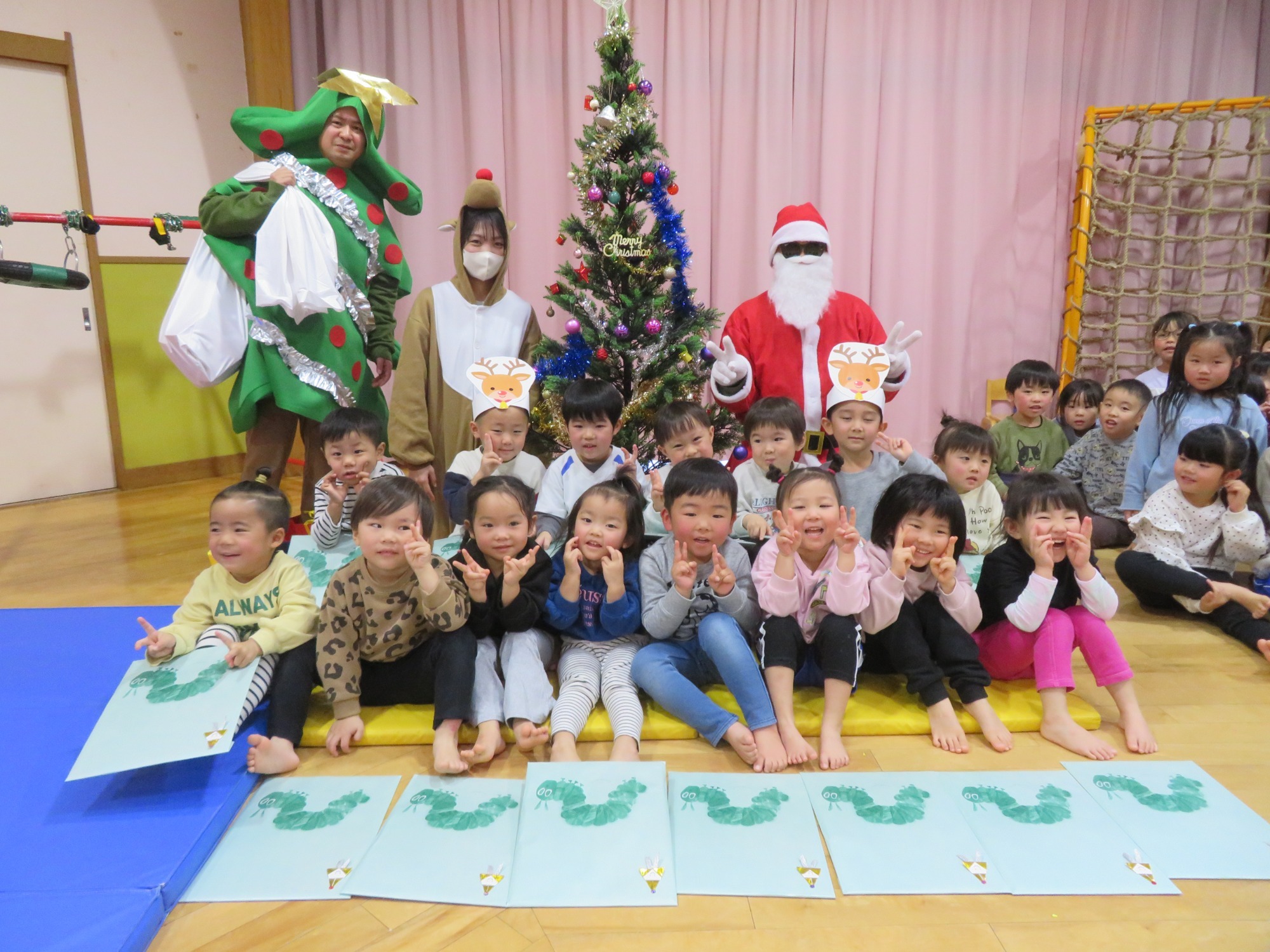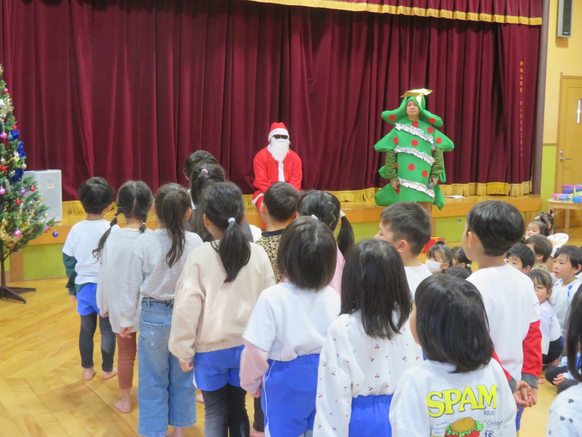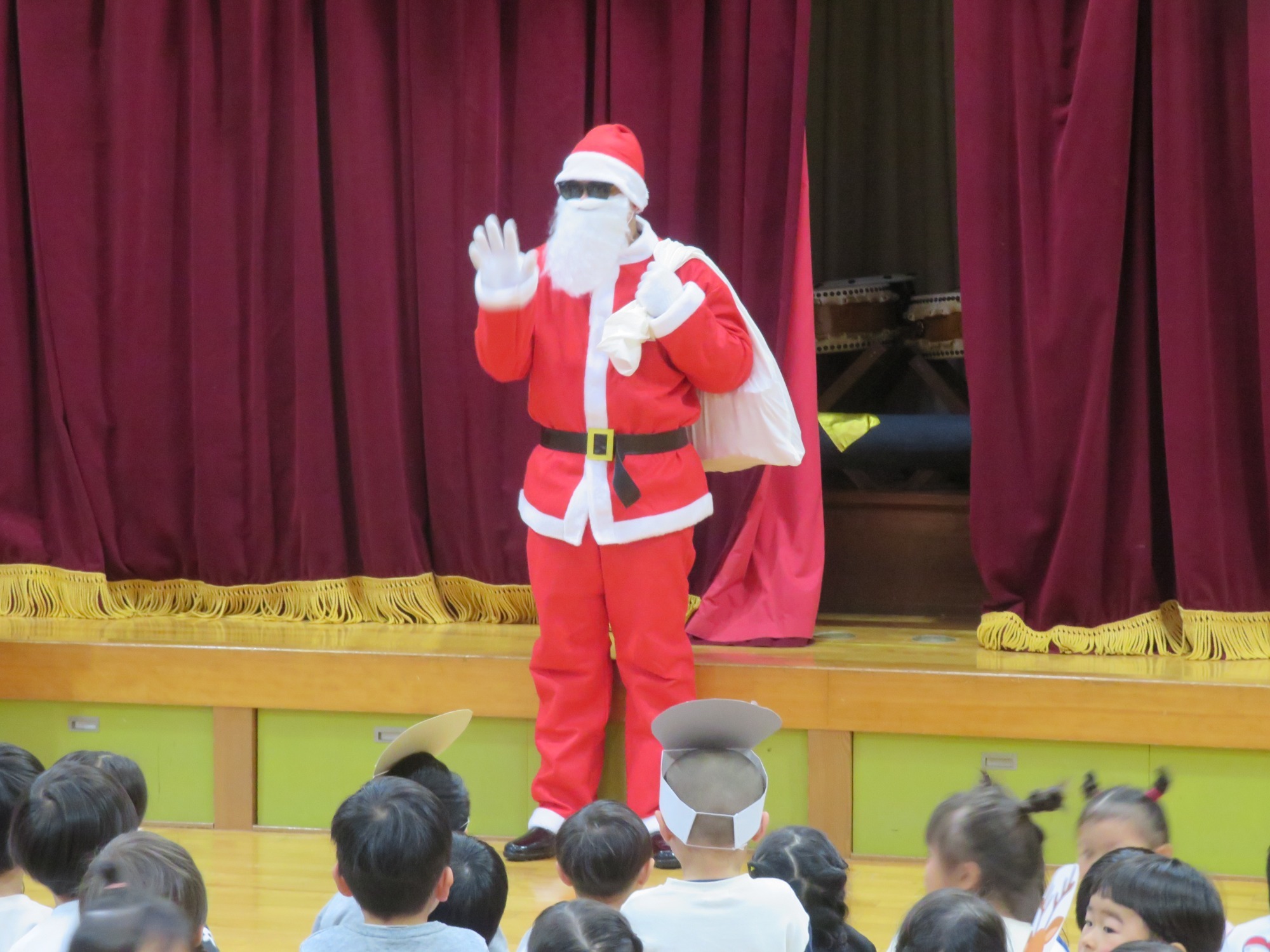 「大きいなぁ!」「プレゼントもっとってや!」みんなキラキラした目でサンタさんを見ていました✨