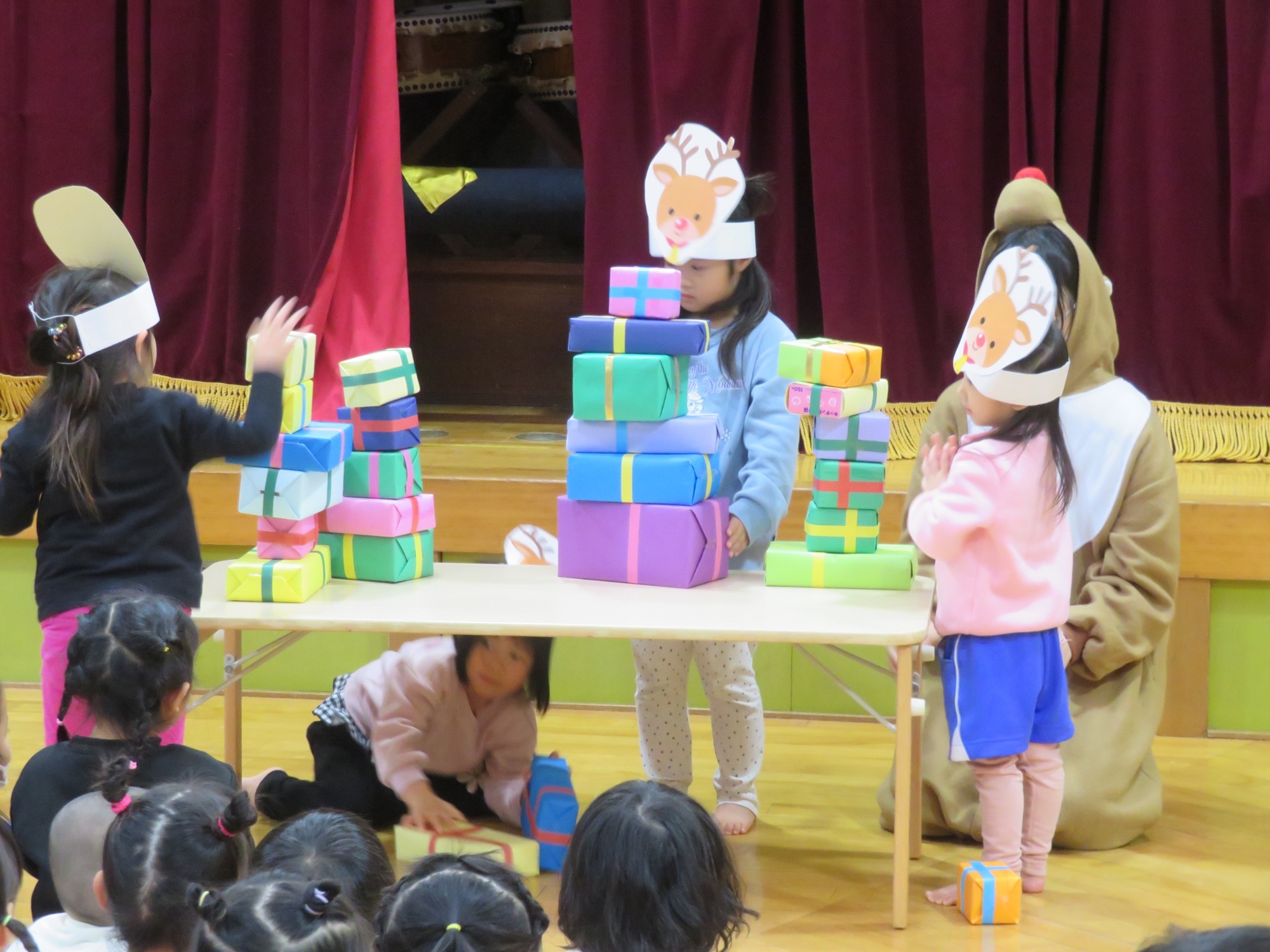 最初はプレゼント積み競争をしたよ☆