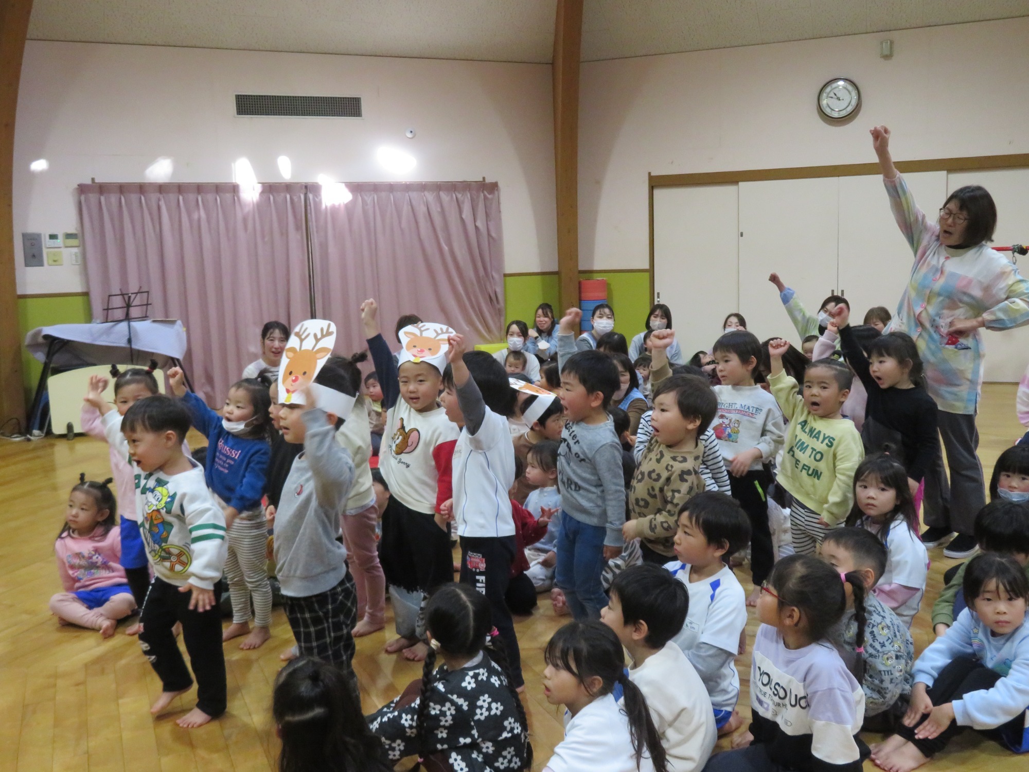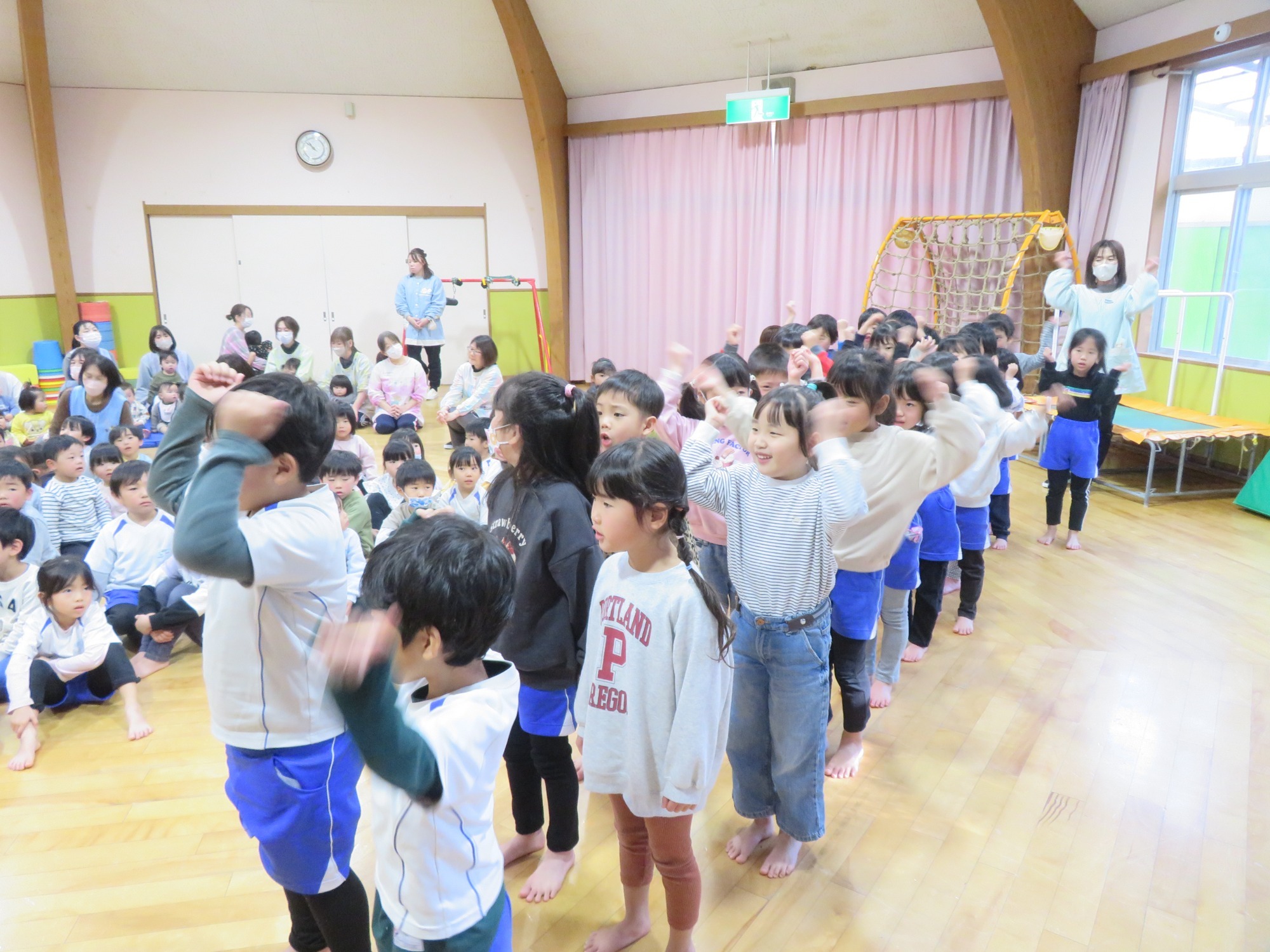 1年生の発表後に年長さんも言ってみよう。